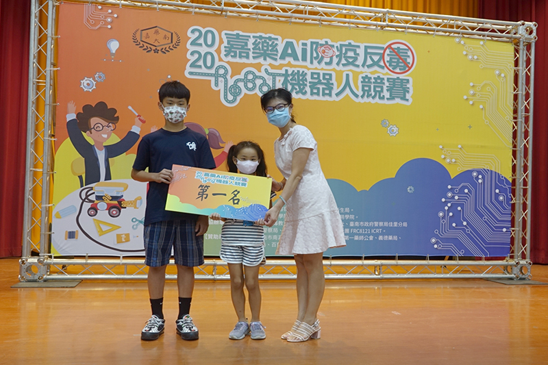 防疫反毒新生活競賽國小組第一名,由臺南市子龍國小黃翊倫同學與東興國小歐韋樺同學的「最佳拍檔」獲得